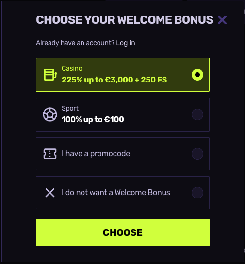 Welcome bonus 100% up to €500 + 200 FS + 1 Bonus Crab